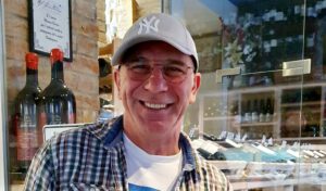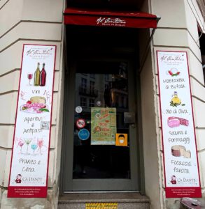 In der Mozzarella Bar in der Auguststr. 34 waren es: Pacchero gefüllt mit Auberginen, Tomaten, geräuchertem Scamorza und Basilikum-Pesto, Crostino mit Butter, Sardellen und Guanciale, Mortadella-Blume mit Ziegenkäse-Mousse, Walnüssen und Trüffelcreme. Für mich war die Kombination von Crostino mit ungeräuchertem luftgetrockneten Speck und Sardellen eine völlig neue Geschmackserkenntnis, wie auch das ungefiltertes Olivenöl. Wir saßen an einer langen Tafel, sonst an kleinen gemütlichen Tischen, z.T. mit Blick auf die großen luftgeräucherten Schinken und die Vielzahl der Weine im Regal – mehr als 200 Sorten. Mimmo Bianco (Foto) erklärte uns die Gerichte und zeigte auch begeistert die Pasta, die immer aldente wird.