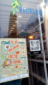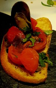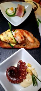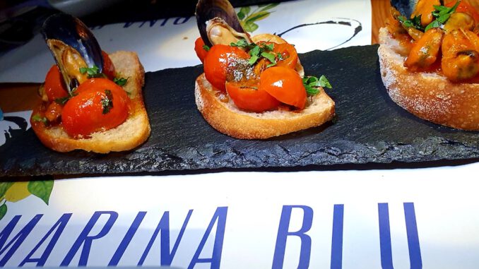 In der gemütlichen Atmosphäre verging die Zeit wie im Fluge und wir begaben uns in das nur wenige Minuten zu Fuss entfernte Restaurant Marina Blu im Weinbergsweg 8a. Hier empfing einem maritimes Flair, ein Wintergarten mit Olivenbaum wo man gemütlich sitzen kann, und im Restaurant fallen die Fotos von Sophia Loren auf. Hier probierten wir: Marinierten Thunfisch mit Gurke und Käsecreme, Tintenfischtentakel auf Kartoffelpüree, Crostino mit Zucchinicreme und Garnelen, was für das True Italian Food Festival von Francesco Bianco mit seinem Team kombiniert wurde. Ich kann nur sagen – es war köstlich. Hingehen und probieren!