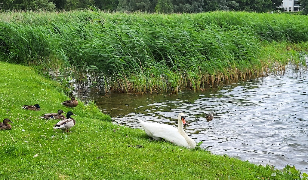 Hier ist die Natur in Ordnung – Rohrkolben wachsen, Enten fühlen sich wohl.