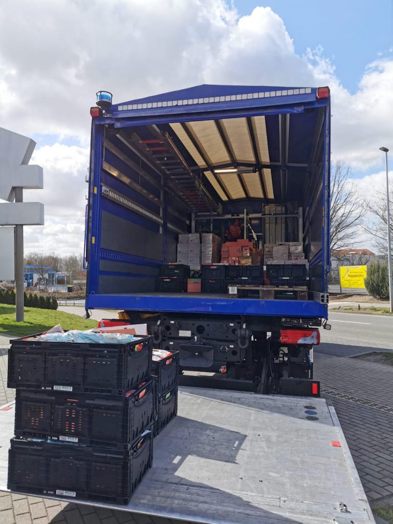 Parallel zu der Unterstützung von bedürftigen Privathaushalten beliefert die Berliner Tafel auch weiterhin viele soziale Einrichtungen mit Lebensmitteln. Aktuell packen die Helfer der Berliner Tafel täglich rund 500 Tüten.