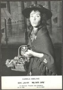 Der Mauerbau 1961 war für Karola Ebeling das Ende des Engagements am Deutschen Theater in Berlin. Durch eine glückliche Fügung wurde sie für die deutsche Uraufführung des Musicals „My Fair Lady“ im Theater des Westens Berlin für die zweite Besetzung der Eliza, neben Karin Hübner, engagiert. Karola Ebeling spielte in über 1000 Vorstellungen die Rolle der Eliza in „My Fair Lady“ in Berlin, München, Zürich, Wien, Frankfurt, Düsseldorf, Luxemburg und auf Tournéen. 1964 spielte Ebeling auch die Rolle der Eliza in Shaws Pygmalion. Mit höherem Alter übernahm sie dann auch die Rollen der Mrs. Pearce und der Mrs. Higgins und führte später auch in Zürich die Regie.