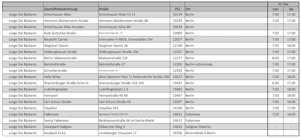 Junge weist darauf hin, dass rund um den Feiertag der Andrang in allen Bäckerei-Cafés besonders hoch ist. Wer dem ausweichen möchte, kann den Online-Bestellservice von Junge unter jb.de/shop nutzen. „Die Onlinebestellung ist besonders an solchen Tagen der schnellste Weg zu frischen Brötchen in unseren Geschäften“, erklärt Junge-Sprecher Gerd Hofrichter. Zum Echten Genuss gehe es dann direkt an der Schlange vorbei zum Abholregal. Das sei quasi „Echter Genuss“ auf der Überholspur.
