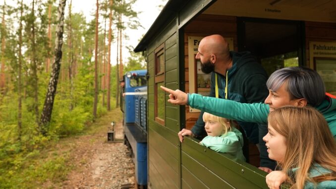 >Die Strecke führt durch den UNESCO Geopark Muskauer Faltenbogen – eine beeindruckende Landschaft mit versunkenen Wäldern und bunten Seen, die von der Bergbaugeschichte der Region zeugen. Die Fahrten starten um 10 und 14 Uhr am Bahnhof Weißwasser-Teichstraße mit einer Diesellok. Nach etwa einer Stunde erreichen die Gäste den „Schweren Berg“. Dort bietet ein Aussichtsturm weite Blicke über die Umgebung und die rekultivierte Bergbaulandschaft. „Die gesamte Rundreise dauert drei Stunden und verspricht einzigartige Naturerlebnisse.“
