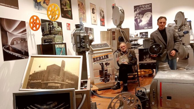 Das analoge Kino in seiner ursprünglichen Form gehört zu einer untergegangenen Epoche – die traditionelle Filmbandproduktion ist eingestellt, mechanische Projektoren werden nicht mehr produziert. Das Kinomuseum Berlin hat sich zur Aufgabe gemacht, die Kulturgeschichte des analogen Kinos sicht- und erlebbar zu machen. Dafür sammelt Jean-Pierre Gutzeit, Historiker und Begründer des Kinomuseums Berlin, seit 1981 unzählige Exponate aus der Geschichte des Kinos – von der originalen Filmrolle in verschiedenen Formaten, über analoge Schnittplätze und mechanische Projektoren verschiedener Epochen, bis hin zur „Sehmaschine“ – der Leinwand in verschiedenen Größen und Bauarten. „Wenn der Projektor rattert und die Sehmaschine zum Leben erwacht, dann kann Kintopp vom Feinsten entstehen“, schwärmt Jean-Pierre Gutzeit.