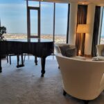 Wir konnten uns auch im 33 Stockwerke umfassenden Hotel umsehen. Begannen in der 31. Etage, wo sich die Präsidentensuite mit 280 m2 Fläche befindet. Schon beeindruckend. Panoramafenster, Konzertflügel, , Küche, offener Kamin, zwei Schlafzimmer mit je einem eigenen Bad, luxuriös in Mamor – und toll – beim Baden kann man in der Wanne sitzend direkt auf die Stadt schauen, die Gedächtniskirche, das Europa Center, sogar den Fernsehturm sieht man. Auch die Zimmer in den anderen Etagen sind sehr luxeriös ausgestattet. Es gibt 232 Zimmer, davon 80 individuell gestaltete Suiten mit eben dem tollen Ausblick.