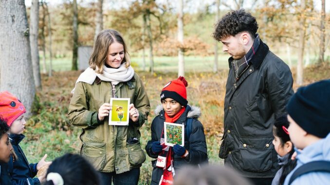 Die Schüler einer Hamburger Grundschule erlebten einen abwechslungsreichen Tag im Jungewald. Initiatorin Isabelle Junge erklärte den Kindern Zusammenhänge in der Natur anhand von Schautafeln.