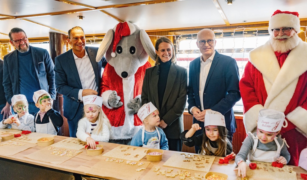 Startschuss für die Märchenschiffe: Im Beisein von Hamburgs Erstem Bürgermeister Peter Tschentscher begann das vorweihnachtliche und weit über die Grenzen der Hansestadt hinaus bekannte Event an der Binnenalster. Liedermacher Rolf Zuckowski ließ es sich ebenfalls nicht nehmen, als Gast an Bord zu gehen und zusammen mit den anwesenden Kindern seinen nunmehr fast 40 Jahre alten Hit „In der Weihnachtsbäckerei“ zu singen. Auf den umdekorierten Alsterschiffen Saselbek und Sielbek können Kinder ab vier Jahren leckere Kekse formen, backen und verzieren – und selbstverständlich mit nach Hause nehmen. Das gilt auch für die stilechte Bäckermütze und Backschürze. „Wir freuen uns, dass wir dieses außergewöhnliche Event in der Vorweihnachtszeit unterstützen dürfen“, sagt Isabelle Junge, Marketingleiterin und Mitglied der fünften Familiengeneration bei Junge.