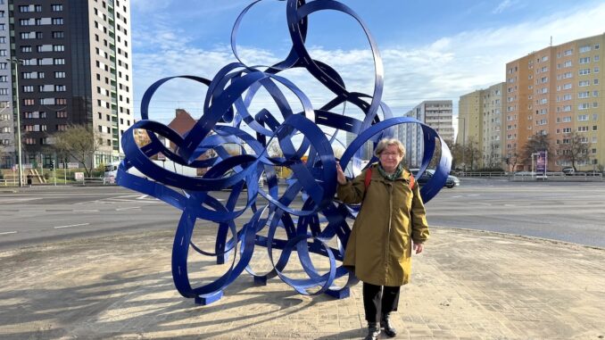 Skulptur „handelundwandel“ von Erika Klagge erstrahlt in neuem Blau