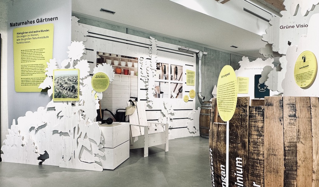 Mit dem Bundeszentrum wird gleichzeitig auch die neu geschaffene Ausstellung eröffnet. Sie spannt auf ca. 160 qm Ausstellungsfläche den Bogen von der Geschichte über die Gegenwart hin zu den Potentialen von Kleingärten als Bestandteil des Stadtgrüns, mit Blick auf Biodiversität, naturnahe Gartenbewirtschaftung und Stadtentwicklung.