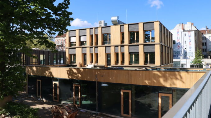 Ein ’Grünes Klassenzimmer’ im Außenbereich soll ab dem Frühjahr 2025 Anlaufstelle für Schulklassen aber auch andere Interessierte werden. Das in innovativer und nachhaltiger Holzbauweise errichtete Gebäude gilt als Pilotprojekt mit Vorbildcharakter und wurde daher mit einer 90%igen Bundesförderung finanziert.