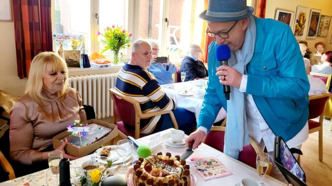 Was für ein Tag! Entertainer, Schlagersänger, Moderator und Textautor Norbert Wohlan – bekannt auch als „Norbi“ – hat am 8. März, dem Internationalen Frauentag, seinem Geburtstag, den inzwischen schon legendären Kaffeeklatsch von Cindy Berger & Norbi im Grunewald ausgerichtet. Er hatte uns zum Sektempfang, in die Seniorenfreizeitstätte in der Herthastraße eingeladen.