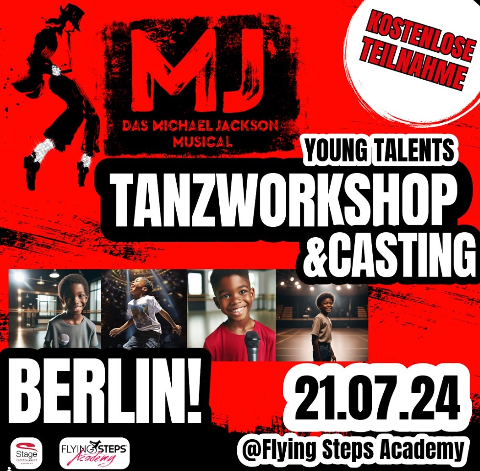 Am 21. Juli findet in der Flying Steps Academy in Berlin ein Workshop statt, bei dem interessierte Kids die Möglichkeit haben, einzelne Tanzschritte aus der Show zu erlernen. Die Teilnehmerzahl ist auf 30 Kinder begrenzt. Interessenten können sich per E-Mail an kinder.casting@stage-entertainment.com mit einem Foto und einem kurzen Text zur Person anmelden.