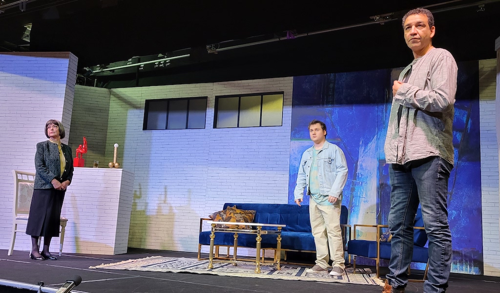 20240226_111448 Ernste Gesichter auf der Bühne des Berliner Kriminaltheaters: Regisseur Sebastian Wirnitzer (rechts) probt das neue Stück „Der Enkeltrick“Berliner Kriminaltheaters