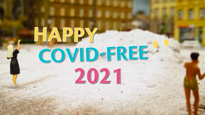 Plötzlich tauchen im Nebel im ganzen Miniatur Wunderland die übergroßen Kugeln auf und einerArt Jahresrückblick beginnt, in dem gezeigt wird, was die kleinen Wunderländer durchstehen mussten. Der Film soll eine hoffnungsfrohe Botschaft für das Jahr 2021 sein und Covid-19 zu Staub machen – zumindest symbolisch…