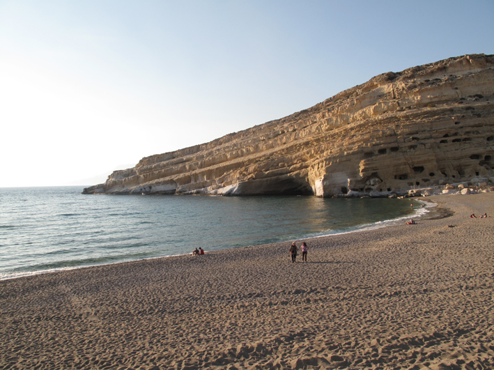 Matala –diese Höhlen waren in der Frühsteinzeit bewohnt. Die frühen Christen nutzten sie als Begräbnishöhlen. Heute bilden sie die atemberaubende Kulisse für einen der schönsten Strände Kretas. Darüber hinaus bietet Matala eine voll und ganz auf Tourismus eingestellte Infrastruktur. Neben den Tavernen und Cafés direkt am Strand, gibt es einen sehr schönen Dorfplatz. Die bedeutsamen Ausgrabungen Festos, Agia Triada und Kommos sind ganz in der Nähe und auch als Ausgangspunkt für Ausflüge ist Matala günstig gelegen.