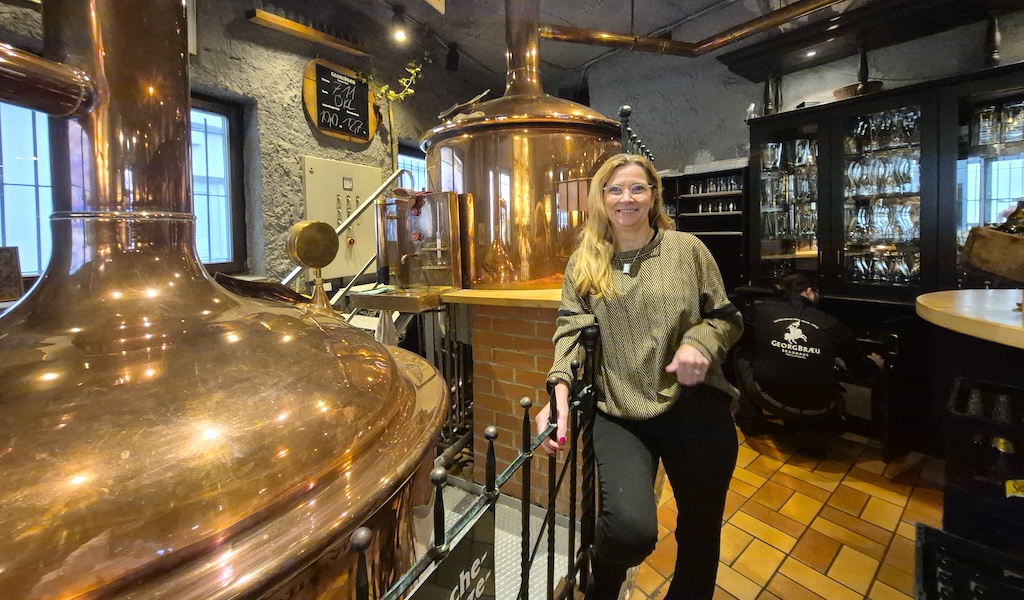 Die geschäftsführende Inhaberin Annett Greiner-Bäuerle begrüßt uns. Sie erklärt: „Wir im Georgbräu leben Tradition, und ich freue mich sehr auf das Martinsgansessen, das wir seit unserer Brauhaus-Eröffnung vor 33 Jahren anbieten. Es gehört zum gemütlichen Beisammensein in unserer ungemütlichen Zeit einfach dazu.“ Seit 2014 leitet sie die Firma, ein Familienunternehmen mit eigener Hausbrauerei. Und die Gäste kommen gern. Es ist deshalb ratsam, einen Platz zu bestellen.