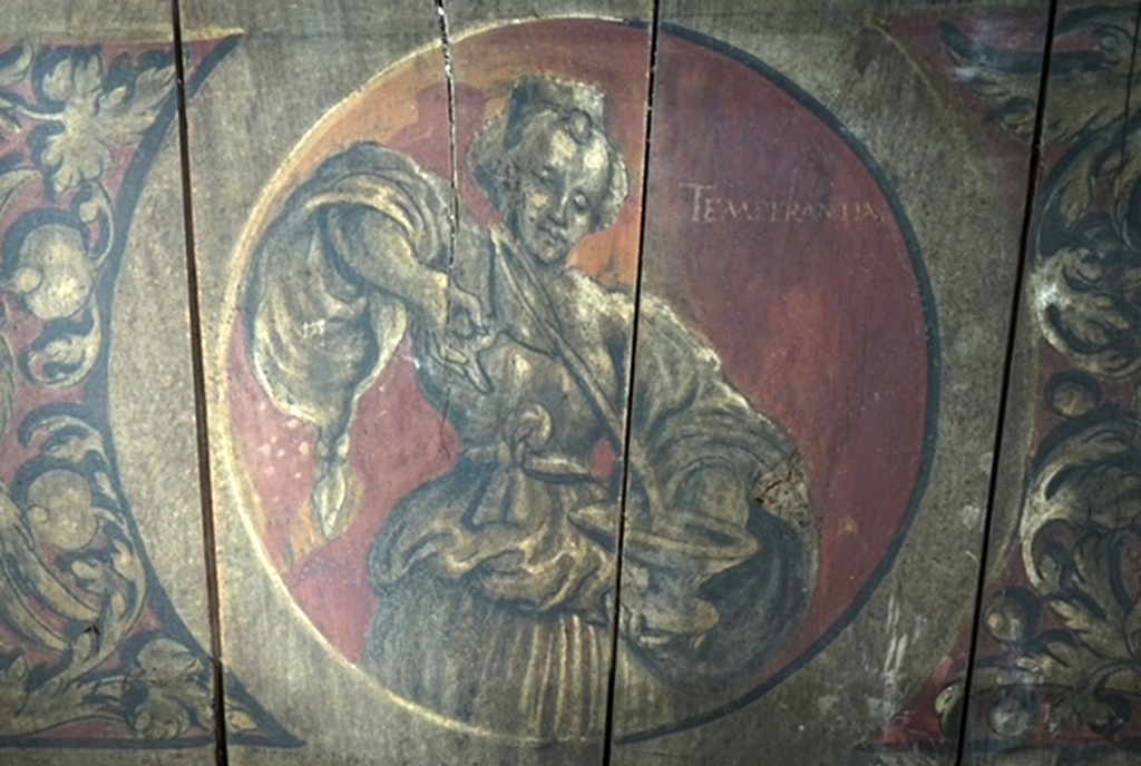 JB-Deckengemälde 02 Ein Ausschnitt aus der fast 500 Jahre alten Deckenmalerei, die im neuen Junge besichtigt werden kann.Ein Ausschnitt aus der fast 500 Jahre alten Deckenmalerei, die im neuen Junge besichtigt werden kann.