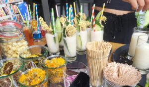 Übrigens: Alle Cocktails des Pretastings waren bisher unveröffentlichte Eigenkreationen des Barteams und werden mit Zutaten aus eigener Produktion hergestellt, wie z. B. dem selbst gemachten Holunderblütenlikör und verschiedenen Kräuter-Tinkturen.