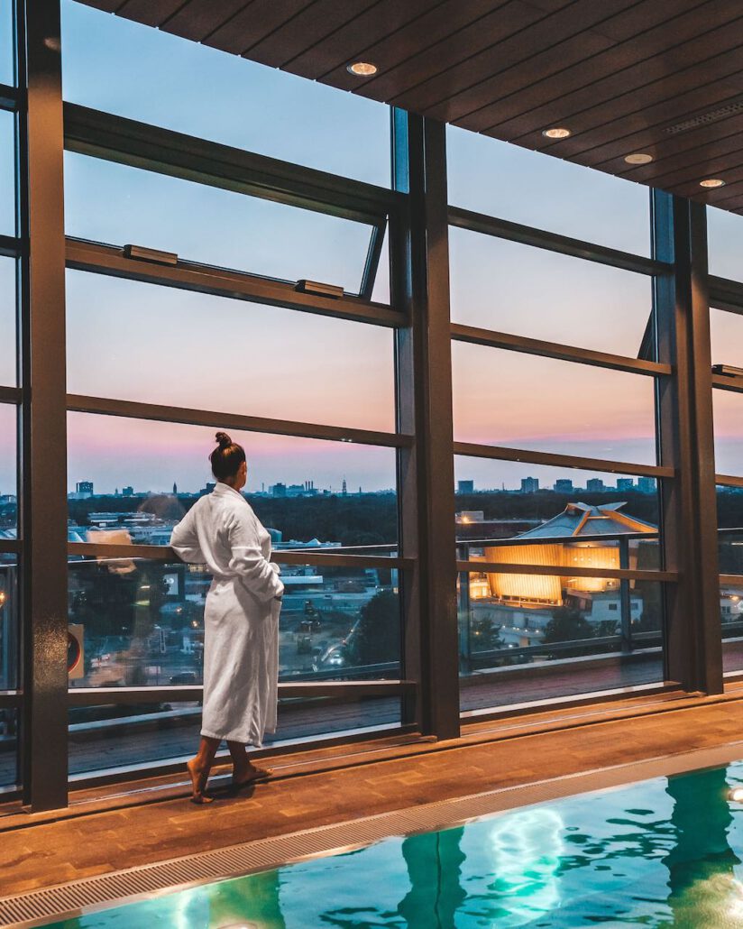 Zum Auftakt des besonderen Spa-Abends wird ab 20 Uhr ein Willkommensdrink serviert. Außerdem stehen eine Flasche Champagner und eine Auswahl frischer Früchte bereit. Zu diesem außergewöhnlichen Wellness-Paket gehört die exklusive Nutzung des Pools. Eine Massage von ausgebildeten Massagetherapeuten kann vor 21:30 Uhr dazu gebucht werden. In der Zeit von 21:30 Uhr bis 23:30 Uhr ist dann der Pool- und Terrassenbereich mit Aussicht über die Hauptstadt ganz allein für die „Dem Sternenhimmel so nah“-Gäste reserviert. Für den perfekten Soundtrack können die Gäste dank Dockingstation dort selbst sorgen und Bademantel und Handtücher liegen selbstverständlich bereit. Für weitere Wünsche steht der Room Service zur Verfügung und die Rezeption im Spa-Bereich bleibt während des gesamten Aufenthalts besetzt.