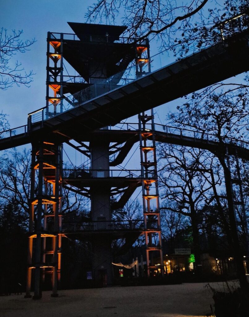 Zusammen mit den winterlichen Lichtinstallationen ist der Baumkronenpfad in den Beelitzer Heilstätten auch in der kalten Jahreszeit ein Ausflugstipp für die ganze Familie.