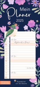 Viel Platz für alle wichtigen Termine und Notizen: Der Planer 2025 sorgt dafür, dass Sie auch in stressigen Phasen den Überblick behalten: Bunte Vögel und Blumenmotive: Die Kalender-Illustrationen springen ins Auge, ohne vom Wesentlichen abzulenken. Ein dekoratives Planungsinstrument für Ihren Single-Haushalt: Der längliche Kalender im Format 21 x 45 cm. Kalender-Design, das für gute Laune sorgt: Die Gestaltung macht den Planer zum Hingucker. Terminkalender für jede Lebenslage: Die Planer von Heye im Athesia Kalenderverlag.
