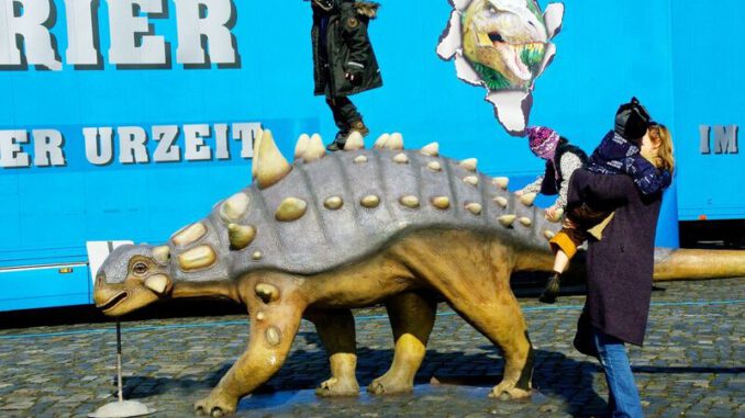 Die bis zu 8 m hohen und 28 m langen originalgetreu rekonstruierten Dinosaurier-Modelle werden die Besucher auf dem Freigelände in Staunen und Begeisterung versetzen! Einzigartig sind die transportablen Dioramen, in denen die Urzeittiere in ihrem Biotop nachempfundenen Kulissen präsentiert werden. Durch eine landschaftliche Illusion und eine detailgetreue Nachbildung werden detailreiche Szenen der urzeitlichen Welt dargestellt!