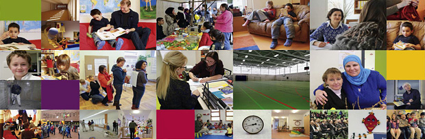 (Artikelfoto: Fahrradfahren? Nur mit Helm! Dorothee Baer und Barbara Schoeneberger mit Schuelern der Grundschule am Koppenplatz; Fotos/ Quelle: Runter vom Gas)