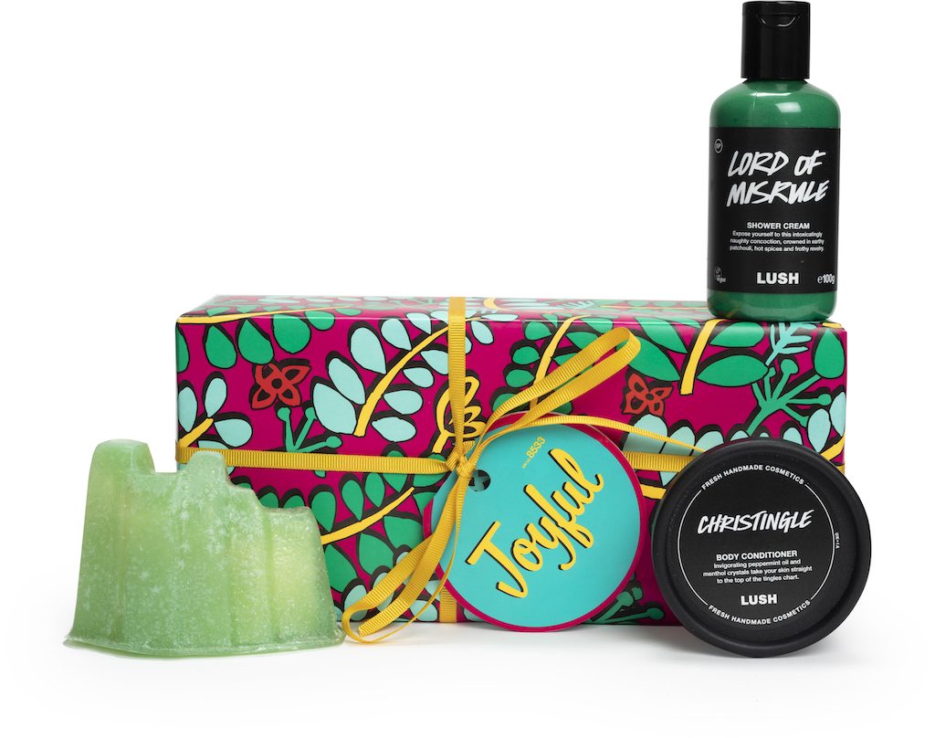 Joyful-Box: Lord of Misrule Duschgel, Icesshoggles Seife und Christingle Body Conditioner.
