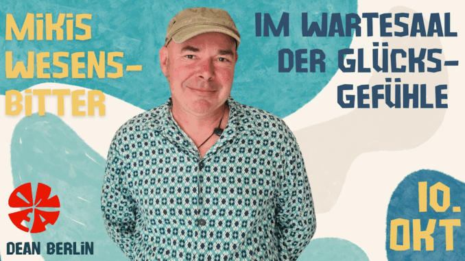 Die Berliner Lokalnachrichten verlosen 3 x 2 Karten. Zur Teilnahme geben Sie bitte im Textfeld das Stichwort „Mikis Wesensbitter“ an. Damit das Textfeld angezeigt wird, müssen Sie angemeldet sein. Eine Teilnahme per E-Mail ist nicht möglich. Einsendeschluss ist der 8. Oktober 2025.