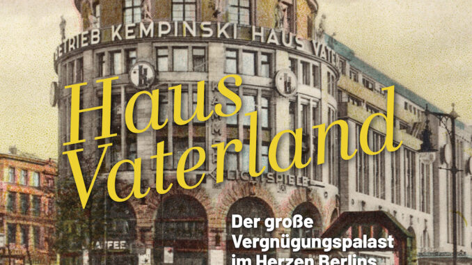 Ende März ist das Buch „Haus Vaterland – Der große Vergnügungspalast in Berlin“ von Vanessa Conze erschienen. Darin erzählt sie die Geschichtes des legendären Berliner Etablissement. Eröffnet im September 1928 wurde das Haus Vaterland zum wohl modernsten Vergnügungstempel Europas, wenn nicht gar der Welt, und zog täglich Tausende Gäste aus dem In- und Ausland an. Wer sich in Berlin amüsieren wollte, kam hierher und ließ sich in den zahlreichen Themenrestaurants, Bars und im Ballsaal für kleines Geld verköstigen und aufs Beste unterhalten.