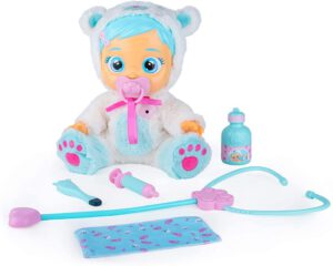 Hust, Hust … ohje, das süße Cry Baby Kristal kränkelt! Vor allem jetzt braucht sie besonders viel Liebe und Fürsorge. Ist ihr Schnuller weg, beginnt sie zu jammern, gibt schluchzende Laute von sich und weint große Kullertränen – fast wie ein echtes Baby. Um wieder gesund zu werden, braucht sie schnell die richtige Medizin und ausgiebige Kuscheleinheiten. Gibt man ihr den Schnuller, hört sie auf zu weinen. Wenn Kristal fröstelt und niest, findet man mit dem Thermometer schnell heraus, ob sie Fieber hat.