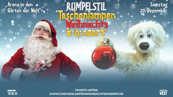 Die Berliner Lokalnachrichten verlosen 2 x 4 Freikarten für das Taschenlampenweihnachtskonzert am 20. Dezember 2025. Zur Teilnahme geben Sie bitte im Textfeld das Stichwort „Taschenlampe“ an. Damit das Textfeld angezeigt wird, müssen Sie angemeldet sein. Eine Teilnahme per E-Mail ist nicht möglich. Einsendeschluss ist der 15. Dezember 2025.