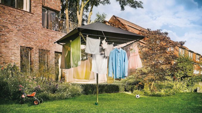 Wäschespinne mit Dach: bei Sonne, Regen und Frost anwendbar
